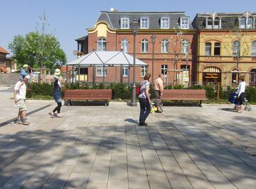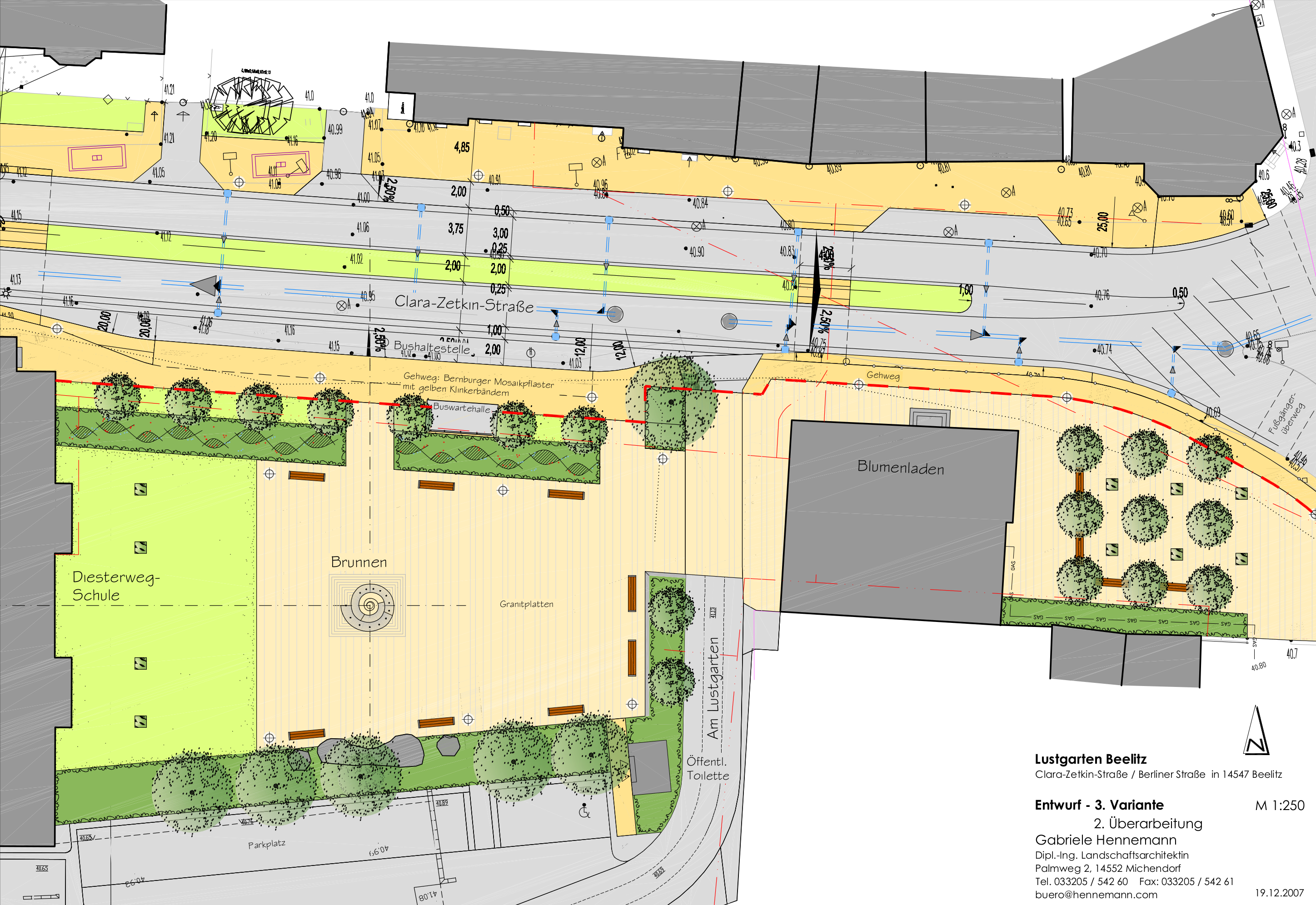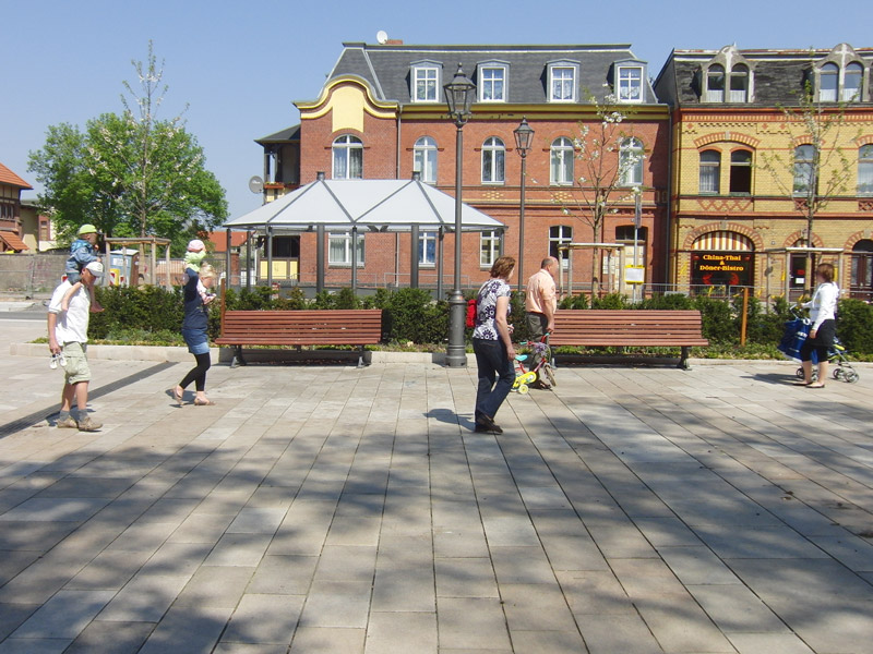 Neubau des Stadtplatzes vor der Diesterwegschule mit Anlage eines zentralen runden Wasserspiels.