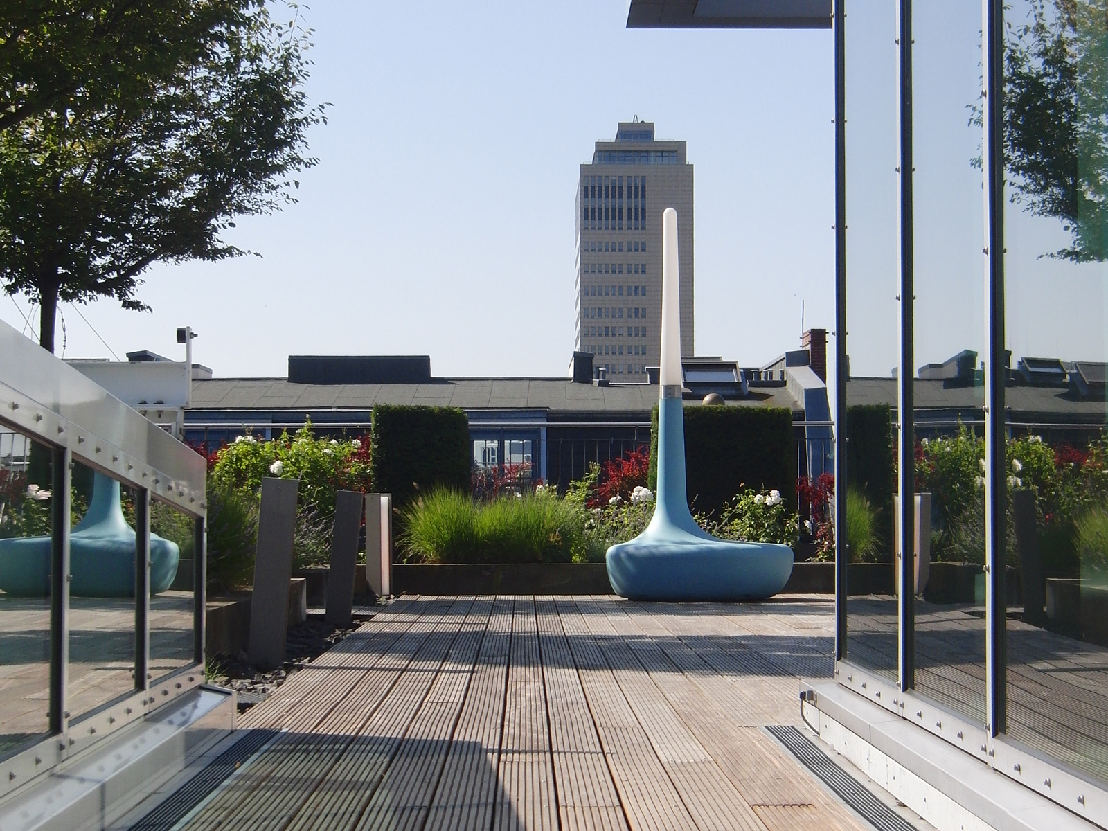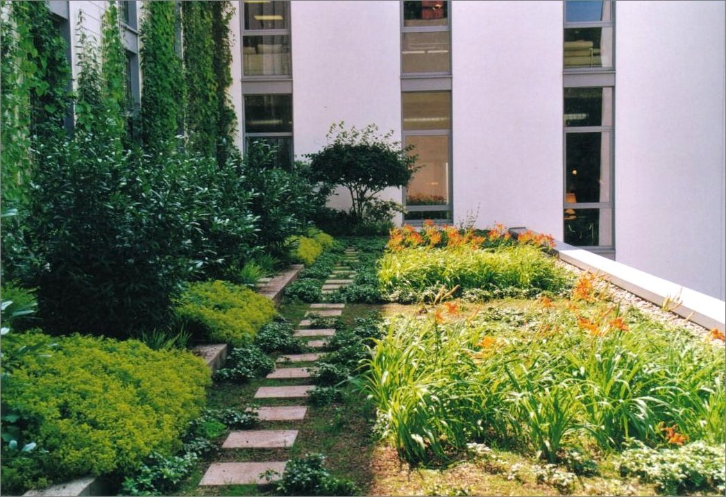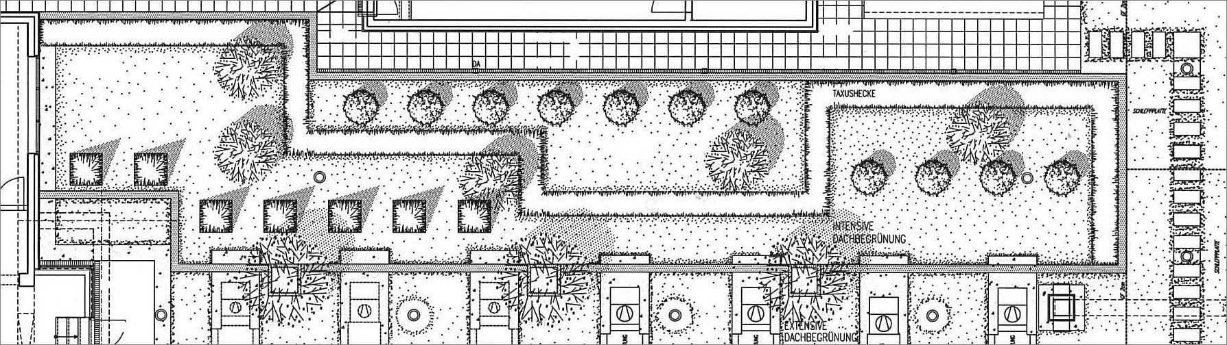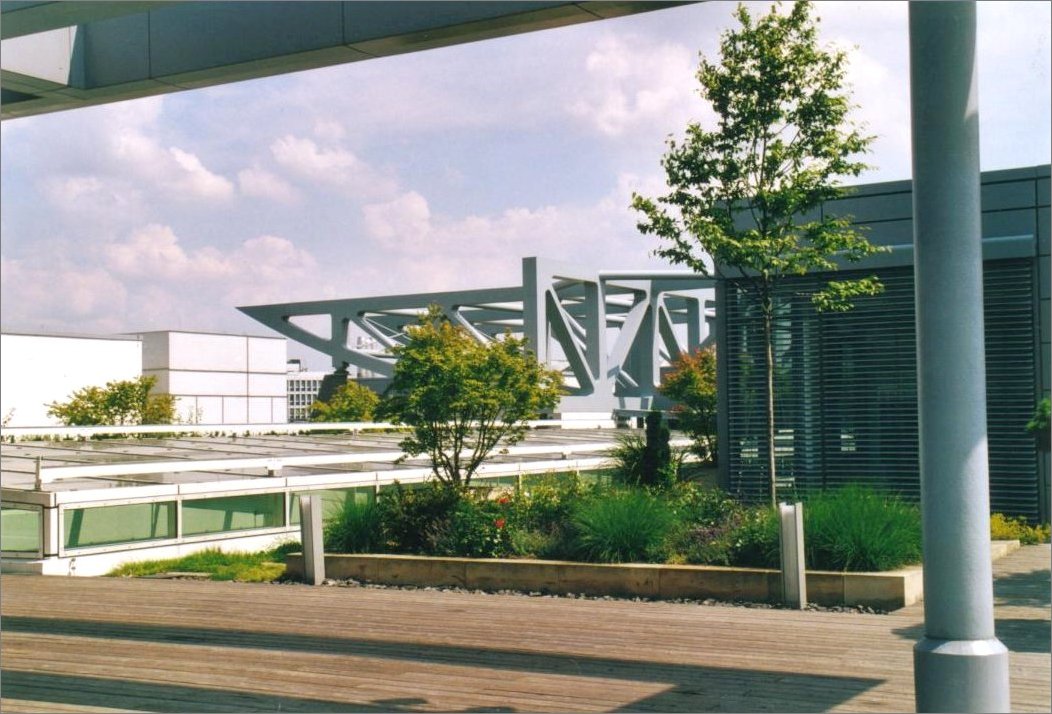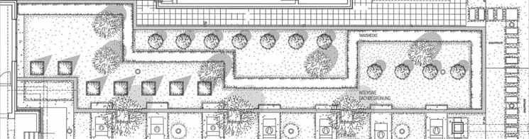 intensive und extensive Dachbegrünung auf vier Etagen.